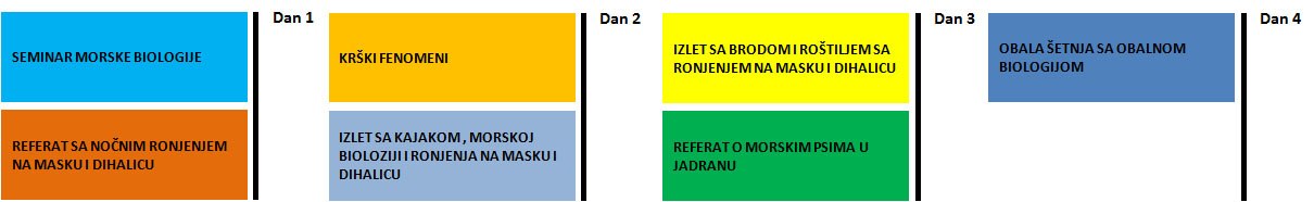 Naši programi u morskoj biološkoj stanici su modularni. Povećanje Počinjevši s lako razumljivim temama te postupno prelaženje na težu tematiku dovodi do potpuno razumjevanja gradiva. Da bi postigli ovaj cilj, naši studenti ne prolaze samo teoretske već i praktične vježbe koje podupiru audio-vizualno učenje.